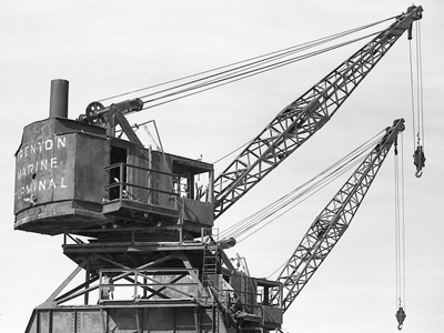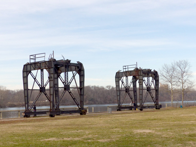 This parcel, originally re-developed as a park in the mid seventies served as a port for cargo brought up the Delaware River on ships. The gantry cranes used to unload the ships were retained as a historic feature (listed on the National Register) and a railing was added to the pier edge for safety.