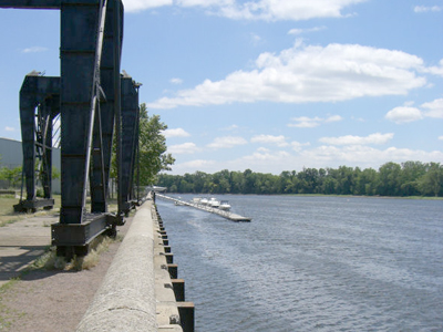 Originally built on wood pilings in 1932, the pier has suffered from age and ice flow damage from the river and in 2003, a portion of the pier at the northernmost edge collapsed into the river. A steel piling system was designed and installed to stabilize the remaining pier and that portion of the park was reopened to the public.