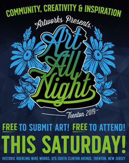 Full ArticleArt All Night - Trenton is a two days arts extravaganza occuring annually on the 3rd weekend in June. AAN encourages any artist of any age, medium or skill level to submit one piece of art to be hung in a gallery-like setting. It is FREE to submit and FREE to attend. The event also features over 40 bands on two stages, interactive events and demo's, food trucks, informative classes and much more!