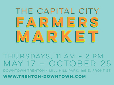 Full ArticleThe Capital City Farmers Market will run every Thursday, May 9 through October 26 from 11:00 a.m. to 2:00 p.m. in Mill Hill Park located at 165 E. Front Street, Trenton, NJ. Each week the market draws around 4,000 visitors -- workers from the surrounding state/government offices and private businesses, as well as residents and tourists.