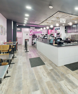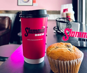Welcome to Slammin Brew, your fun-filled cafe in Trenton! Indulge in freshly baked pastries, expertly brewed coffee, hearty sandwiches, crisp salads, and our refreshing frozen espresso drinks. Every month, we showcase local artists with fresh exhibits and vibrant murals, all supporting our talented community. Kick back on our comfy couch, catch a movie, or dive into a book from our shelf.